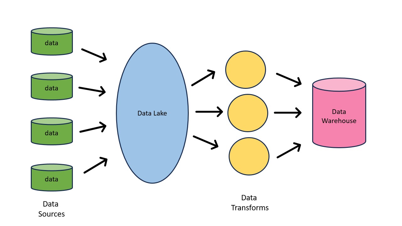Häufig werden Data Lakes zusammen mit Data Warehouse verwendet. Zunächst werden alle Daten in den Lake gekippt und dann nach bestimmten Kriterien extrahiert, strukturiert und in den Speicher oder die Datenbank gestellt.
