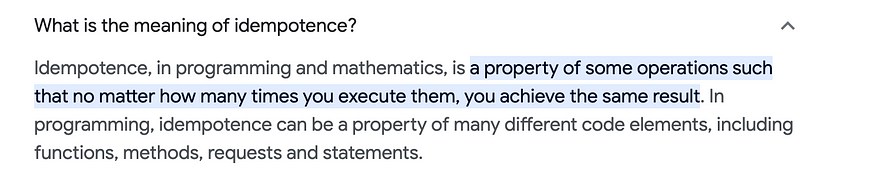 a. enable.idempotence : sometimes , due to network problems , the producer keep sending messages to the broker , and the same message is going to be processed more than one , imagine you have a bank app that is writing transactions of your clients , what’s bad is the financial balance will be inacurate and the credibility of your app is going to be down … so let’s mitigate these problems and set this variable which has the term idempotence in it to true , even when we look in the definition of the word we may understand what is its purpose from the first glance . here’s what we get if we google this term :