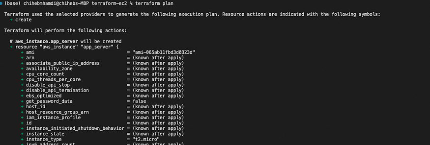 In this step, we’re validating and organizing the configuration. During the planning phase, we execute the `terraform plan` command. This command outlines the resources that will be created. If we take a look, we can see that an EC2 instance is among the resources slated for creation. This planning phase gives us a preview of the changes that Terraform is about to make.