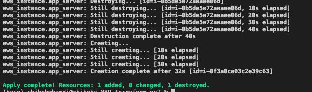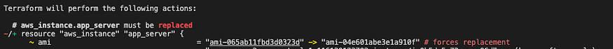 Absolutely, the `-/+` sign in the Terraform output indicates that the instance will be both destroyed and recreated. This happens when a significant change, like switching the AMI, requires the creation of a new instance instead of modifying the existing one. Terraform intelligently handles these changes, ensuring the desired state is achieved while minimizing disruptions to the infrastructure.