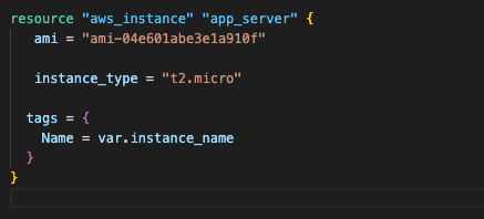 Specifically, we are changing the Amazon Machine Image (AMI) of our instance. Initially, we used the default Amazon Linux AMI (ami-065ab11fbd3d0323d), and now we’re switching to the Ubuntu AMI (ami-04e601abe3e1a910f). This change involves modifying the `ami` field in the resource section of the configuration. This update reflects the dynamic nature of infrastructure management with Terraform.