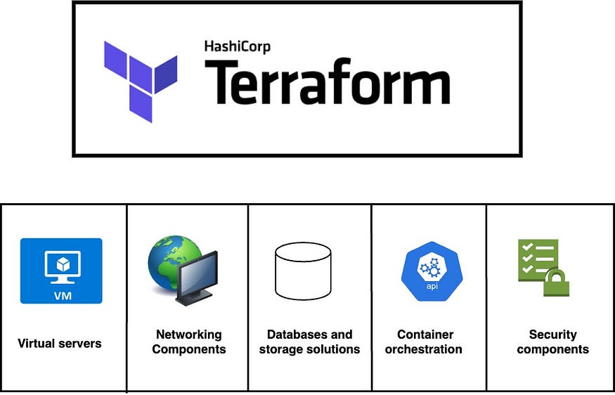 In the picture below, we can observe what Terraform is capable of provisioning. Additionally, it has the ability to provision custom resources based on the specific use case.