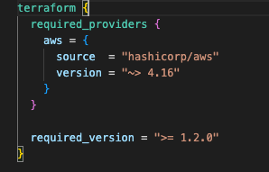 • terraform section : In the Terraform section, we can specify certain behaviors of Terraform itself, such as setting the minimum required Terraform version. This ensures that the configuration is compatible with the specified Terraform version and avoids potential issues.